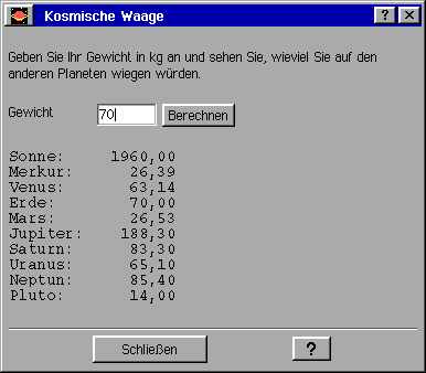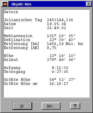 Mondphasen, Auf- und Untergängen von Planeten, Jupitermondpositionen.