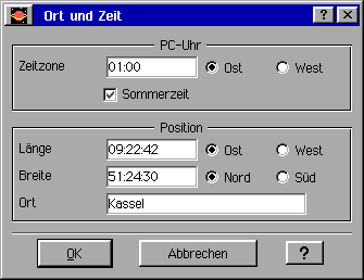Mondphasen, Auf- und Untergängen von Planeten, Jupitermondpositionen.
